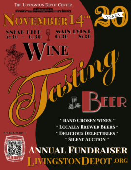 The Livingston Depot Foundation hosts the well-known Wine & Beer Tasting on Friday, November 14th from 5:30–8:30pm at the Livingston Depot Center. The signature event is back and celebrating its 20th year in support of the preservation of the iconic Depot building as the anchor of vibrant ...