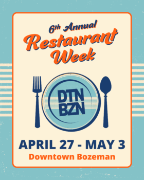 The Downtown Bozeman Association and downtown eateries, pubs and cafes are proud to present the sixth annual DTN BZN Restaurant Week. The seven-day showcase of downtown’s best food, dessert and drink will take place Monday to Sunday, April 27th through May 3rd.