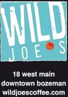 Wild Joe*s Coffee Spot is located at 18 W. Main St. in the heart of historic Downtown Bozeman. Learn more about these and other upcoming events at www.wildjoescoffee.com. •