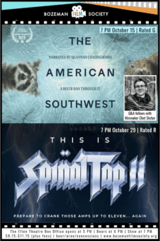 The American Southwest and Spinal Tap II screen on Oct. 15th and 29th, respectively, at the Ellen. Wine, beer and concessions will be available prior to the screenings. Find ticketing access and learn more about the current season at www.bozemanfilmsociety.org – and Keep ‘Em Flickering! •