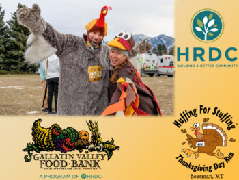 Huffing For Stuffing brings the community together to support our neighbors who rely on the Gallatin Valley Food Bank during a time of great need by providing heart-healthy, family oriented fun in the form of a race. Huffing for Stuffing is presented by HRDC’s Gallatin Valley Food Bank in partnership with Big Sky Wind Drinkers. Thank you for supporting Gallatin Valley’s Thanksgiving holiday tradition! Participants of all abilities are welcome. For much more information, course maps, and to register, please visit www.huffingforstuffing.com.