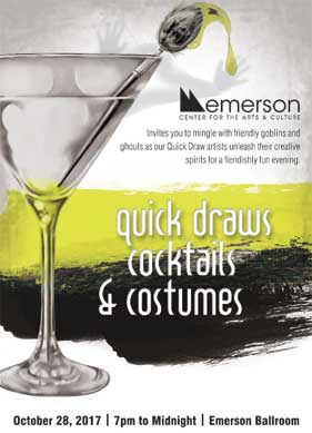 Gather your gang of grown-up ghouls for a fiendishly fun evening. The Emerson Center for the Arts & Culture will host its annual Quick Draws, Cocktails & Costumes event on Saturday, October 28th from 7pm–midnight.