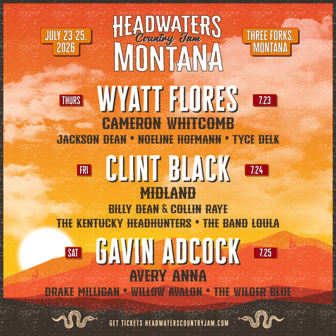 « All Events Headwaters Country Jam July 25 @ 12:00pm « The 15th Red Ants Pants Music Festival Steve Earle » GET 2026 TICKETS + Google Calendar+ Add to iCalendar Details Date: July 25 Time: 12:00pm Event Categories: Miscellanea, Music Venue The Bridge – Three Forks 1865 Highway 2 Three Forks, MT 59752 United States + Google Map Phone: (406) 285-0099 Website: http://www.rockintherivers.com