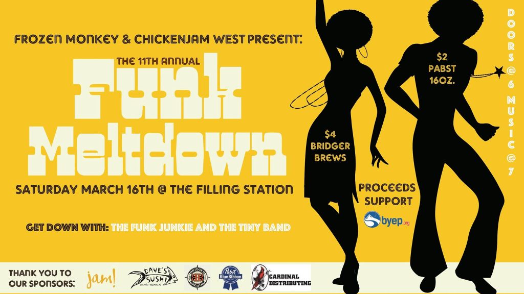 FroZen Monkey and ChickenJam West have teamed to present the 11th Annual Funk Meltdown at 7pm on Saturday, March 16th. This year’s event takes over the Filling Station featuring live entertainment by The Tiny Band with help from Funk Junkie.