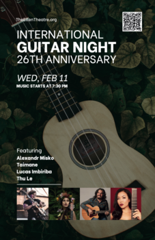 The world-renowned touring showcase of contemporary guitar artistry, International Guitar Night, returns to The Ellen Theatre on Wednesday, February 11 at 7:30pm. The event delivers an unforgettable evening of breathtaking musicianship and global musical voices.