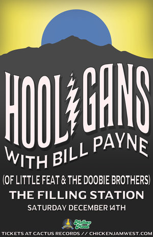 On December 14th, ChickenJam West and Mellow Mood present veteran Americana rockers Hooligans with special guest Bill Payne of Little Feat and the Doobie Brothers. The Saturday night performance begins at 8pm. Tickets to this 21+ show are $11 in advance and $15 at the door. Doors at 7pm.