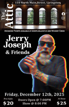 Whether you’re a Park Co dweller or coming over the hill, Downtown Livingston’s Attic brings in acts to suit every palate – and plenty of cocktails to go with ‘em! Jerry Joseph & Friends are set for a Friday night show on December 12th. Music begins at 8pm with doors one hour prior.