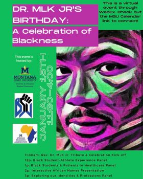 Montana State University will host a virtual celebration of Martin Luther King Jr.’s birthday on Friday, Jan. 15. “A Celebration of Blackness” will take place from 11:30 a.m. to 4 p.m. and feature numerous ...