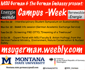 BOZEMAN – A week of events focused on innovative renewable energy technologies, sustainability and culture in Germany is set for Oct. 22-26 on the Montana State University campus.