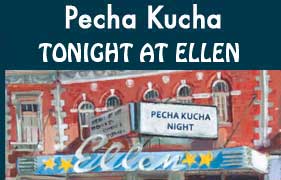 The presentations are part of the next PechaKucha Night(s) at The Ellen Theatre, Wednesday and Thursday, February 21st and 22nd. The shows start at 6:40pm each night.