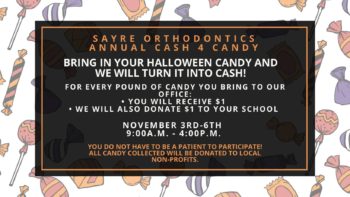 Local youth will gather once again at Sayre Orthodontics for a chance to turn their Halloween candy into cash! This year marks the 13th annual Cash 4 Candy drive.